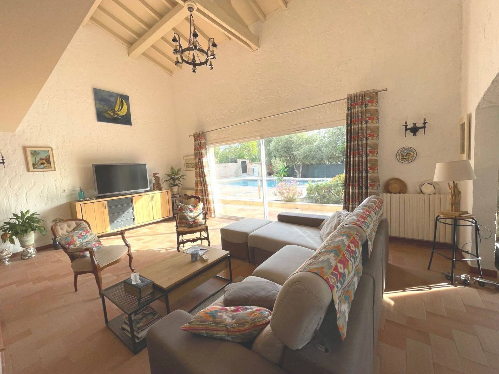 Sur un terrain plat de 1150m² avec une grande piscine et un pool house, ainsi qu'un grand garage et une cave.