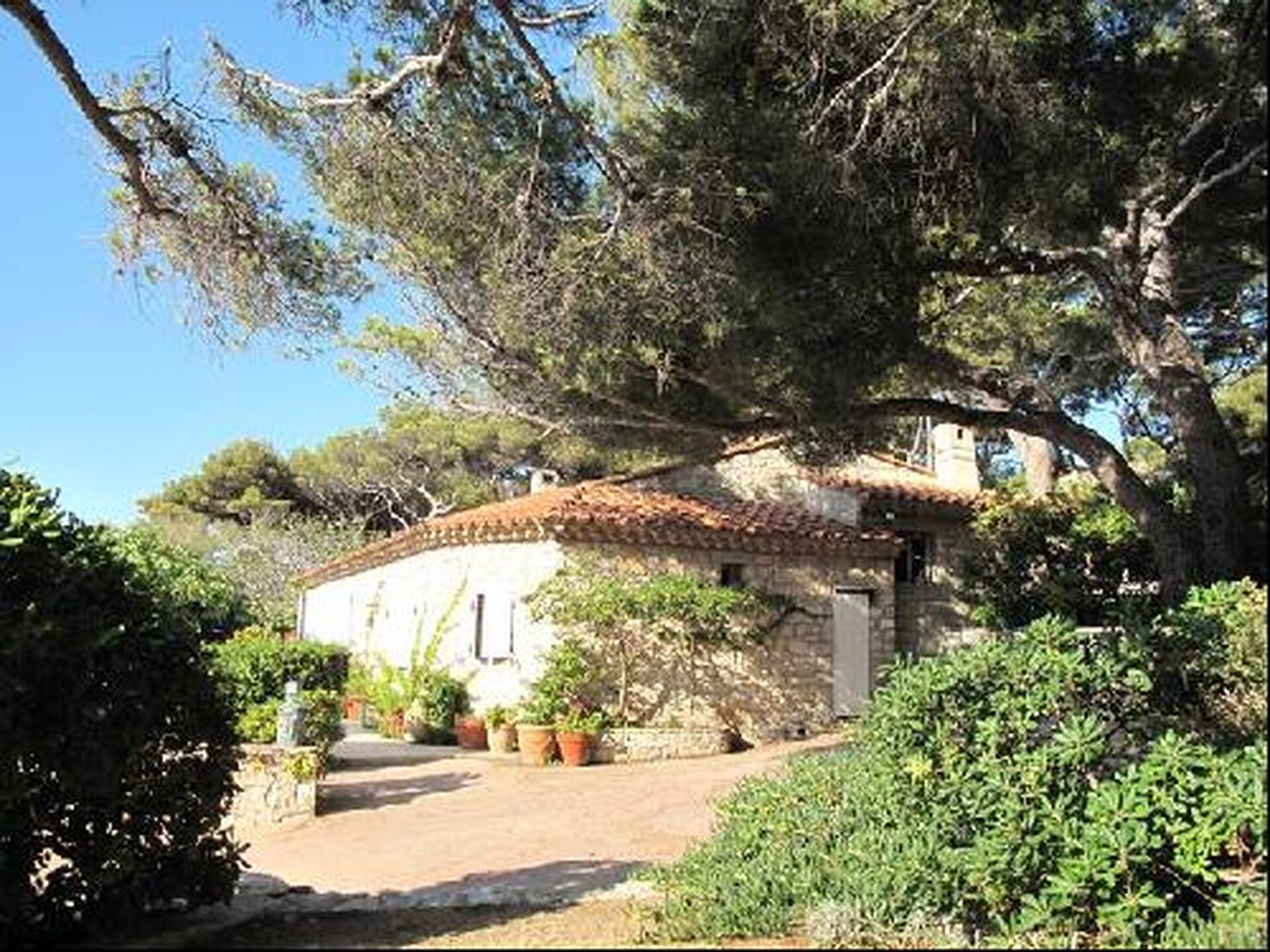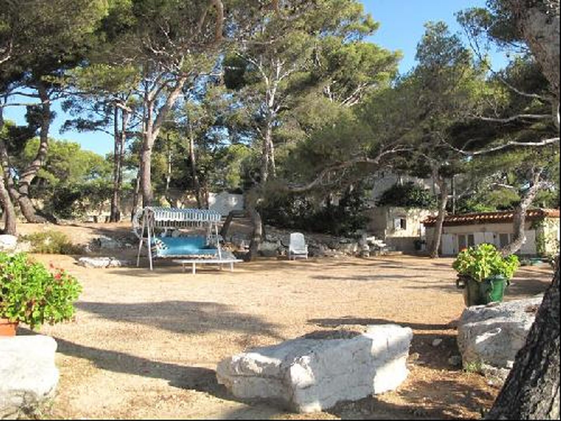 Unique à Cassis, accès privé mer, propriété les pieds dans l'eau sur 5600 m² de terrain arboré face à la méditerrannée. Total bâti en pierres 210 m², garage, piscine eau de mer.
