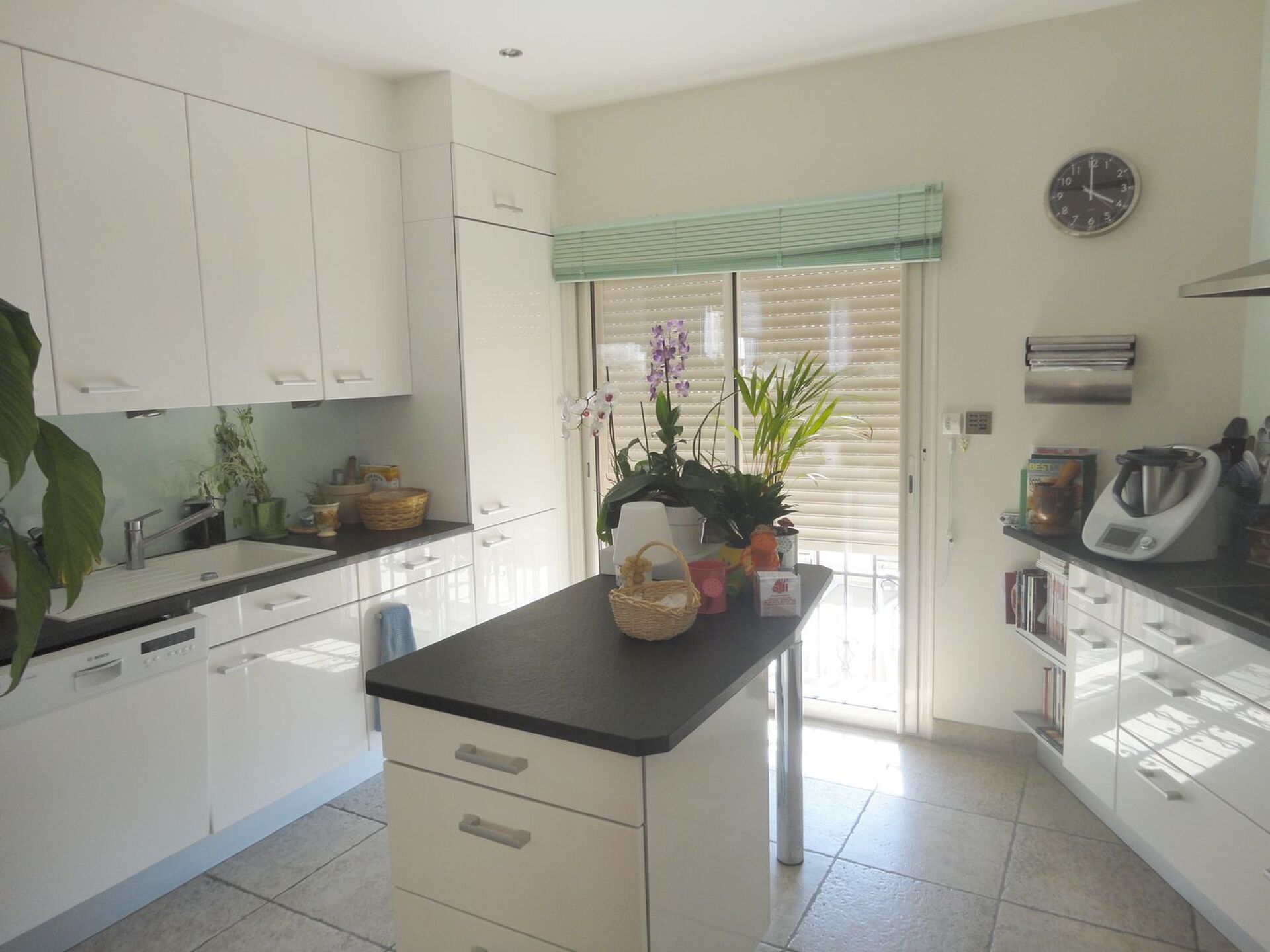 Prestations : Domotique, Alarme, Vidéophone, Volets électriques, Double vitrage, Porte blindée, Arrosage, Portail automatique, Cuisine d'été avec four à bois et barbecue.